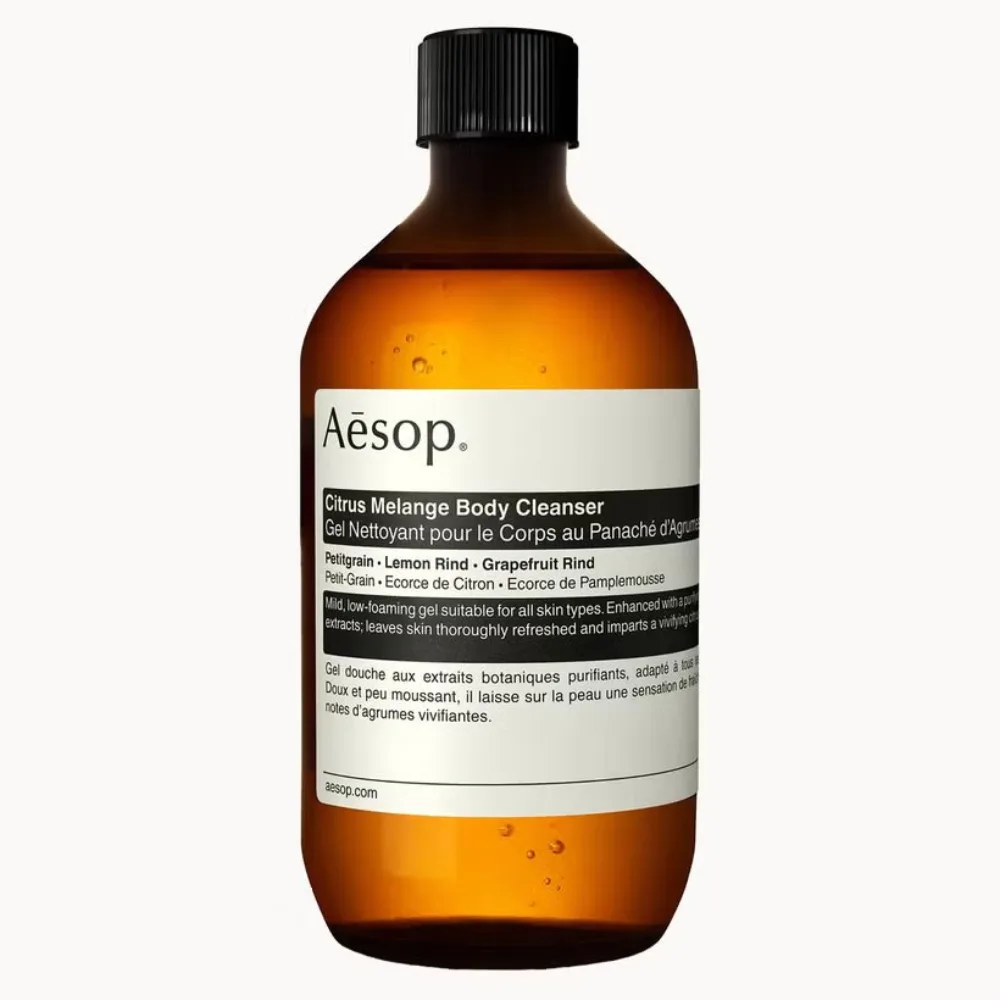 Aesop Citrus Mélange Body Cleanser (Screw Cap Edition) delivers the same uplifting cleansing experience in a practical screw cap format, ideal for refilling dispensers or professional settings.