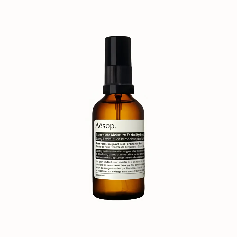 Aesop Immediate Moisture Facial Hydrosol is a convenient facial mist formulated to deliver light hydration and refresh the skin throughout the day. Ideal for travel, office use, or dry environments, it provides an immediate boost of moisture without disrupting makeup.