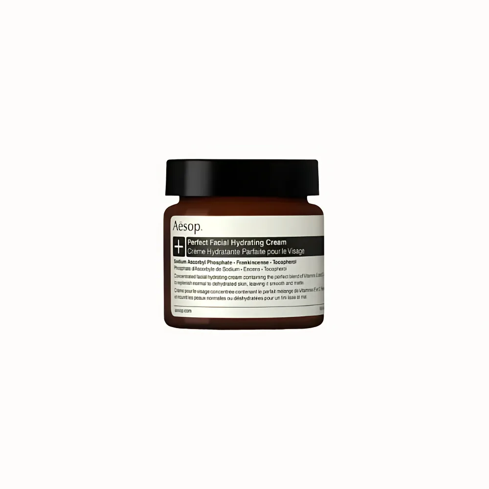 Aesop Perfect Facial Hydrating Cream is a deeply nourishing moisturiser formulated to replenish and protect dry, dehydrated, or mature skin. Its rich yet absorbent texture delivers lasting hydration while helping to strengthen the skin’s barrier.