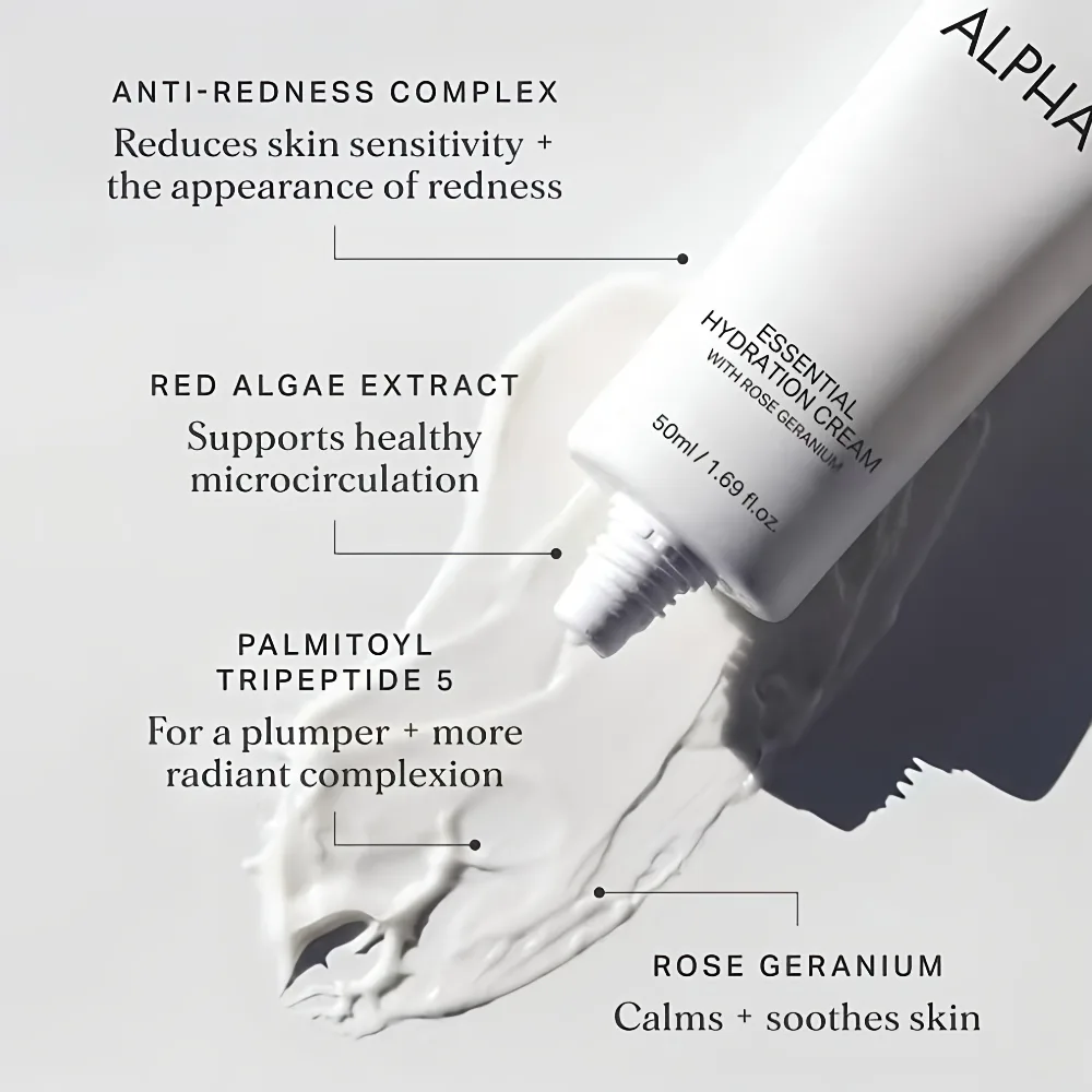Alpha-H Essential Hydration Cream is a rich, antioxidant-infused moisturiser formulated to deliver deep hydration while helping to soothe and strengthen the skin barrier. Designed for daily use, the cream works to replenish moisture, soften the appearance of fine lines and support a healthier-looking complexion.