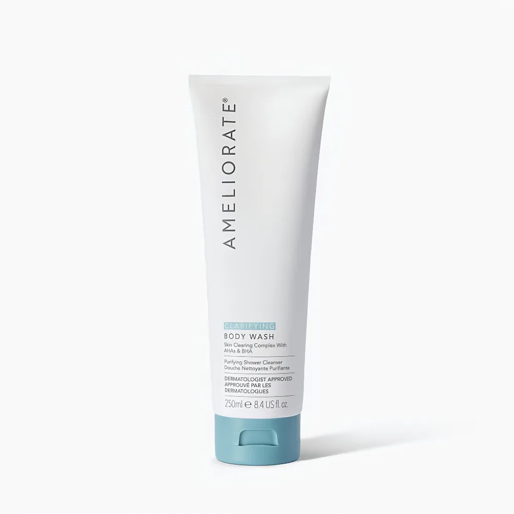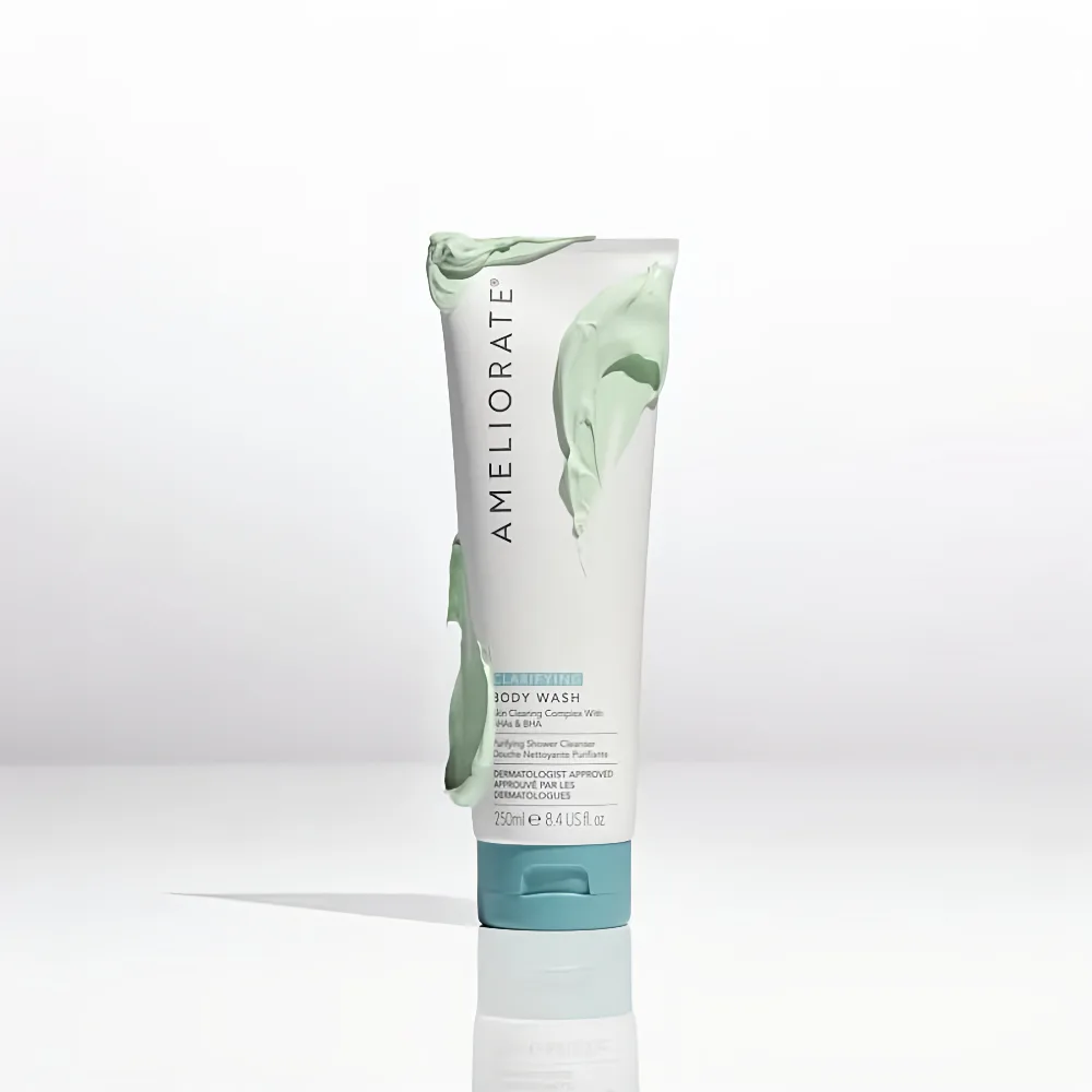 AMELIORATE Clarifying Body Wash 250ml is a gentle yet effective body cleanser designed to remove impurities, excess oil, and dead skin cells while improving the texture of rough and bumpy skin. Enriched with lactic acid (AHA) and the LaH6 Skin Hydration Complex, it helps smooth uneven skin, reduce keratosis pilaris (KP), and maintain healthy hydration.