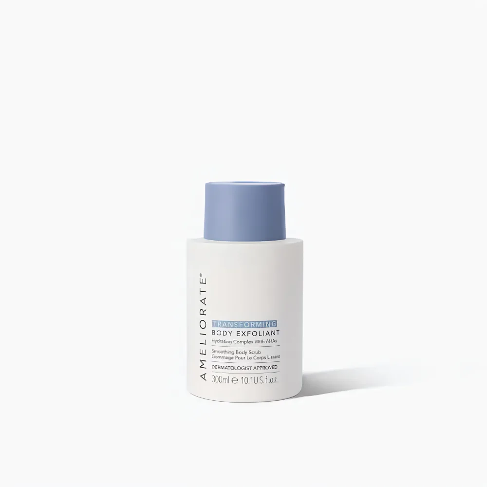 AMELIORATE Transforming Body Exfoliant 300ml is an award-winning dual-action body exfoliator designed to smooth rough, dry, and bumpy skin while delivering long-lasting hydration. The formula combines biodegradable bamboo particles for gentle physical exfoliation with naturally occurring AHAs (Alpha Hydroxy Acids) to help remove dead skin cells and improve skin texture.