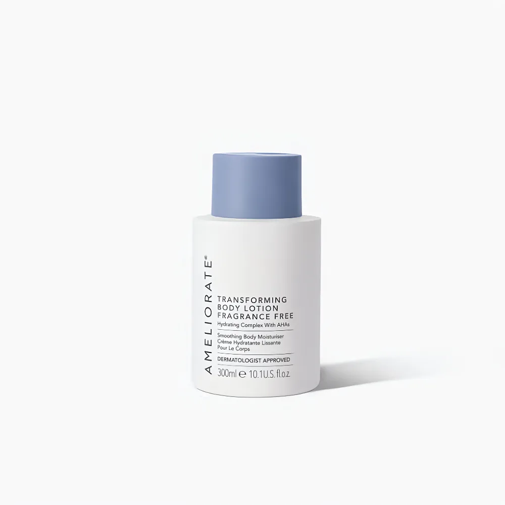 AMELIORATE Transforming Body Lotion Fragrance Free 300ml is a specially formulated body lotion designed to deeply hydrate and improve the appearance of rough, dry, and uneven skin — without added fragrance. Ideal for sensitive skin or anyone who prefers a scent‑free formula, this lotion works to smooth texture and restore softness.