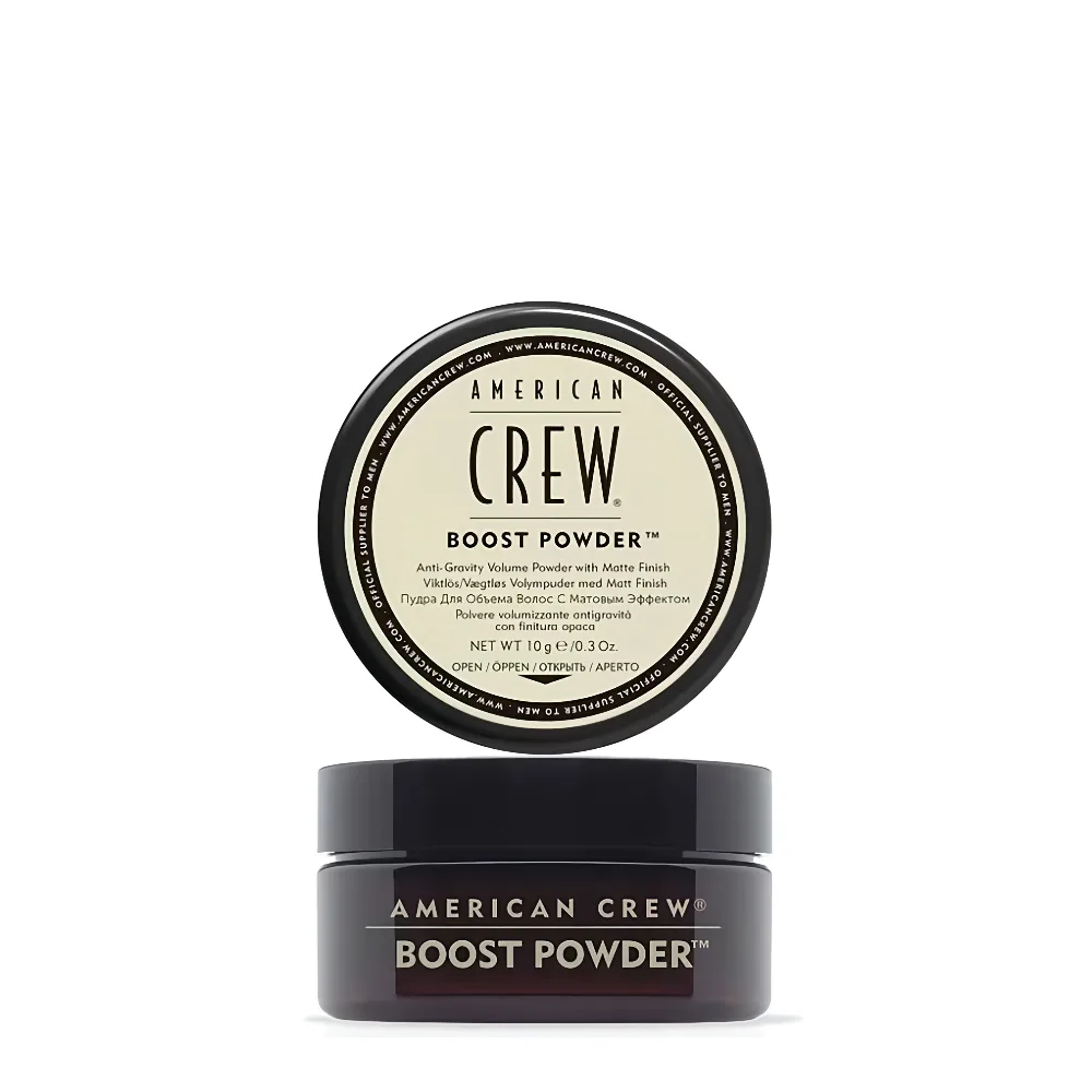 American Crew Boost Powder 10g is a lightweight hair styling powder designed to add instant lift, thickness, and texture to the hair while delivering a natural matte finish. This anti-gravity volumizing powder works at the roots to create fuller-looking hairstyles without weighing hair down.