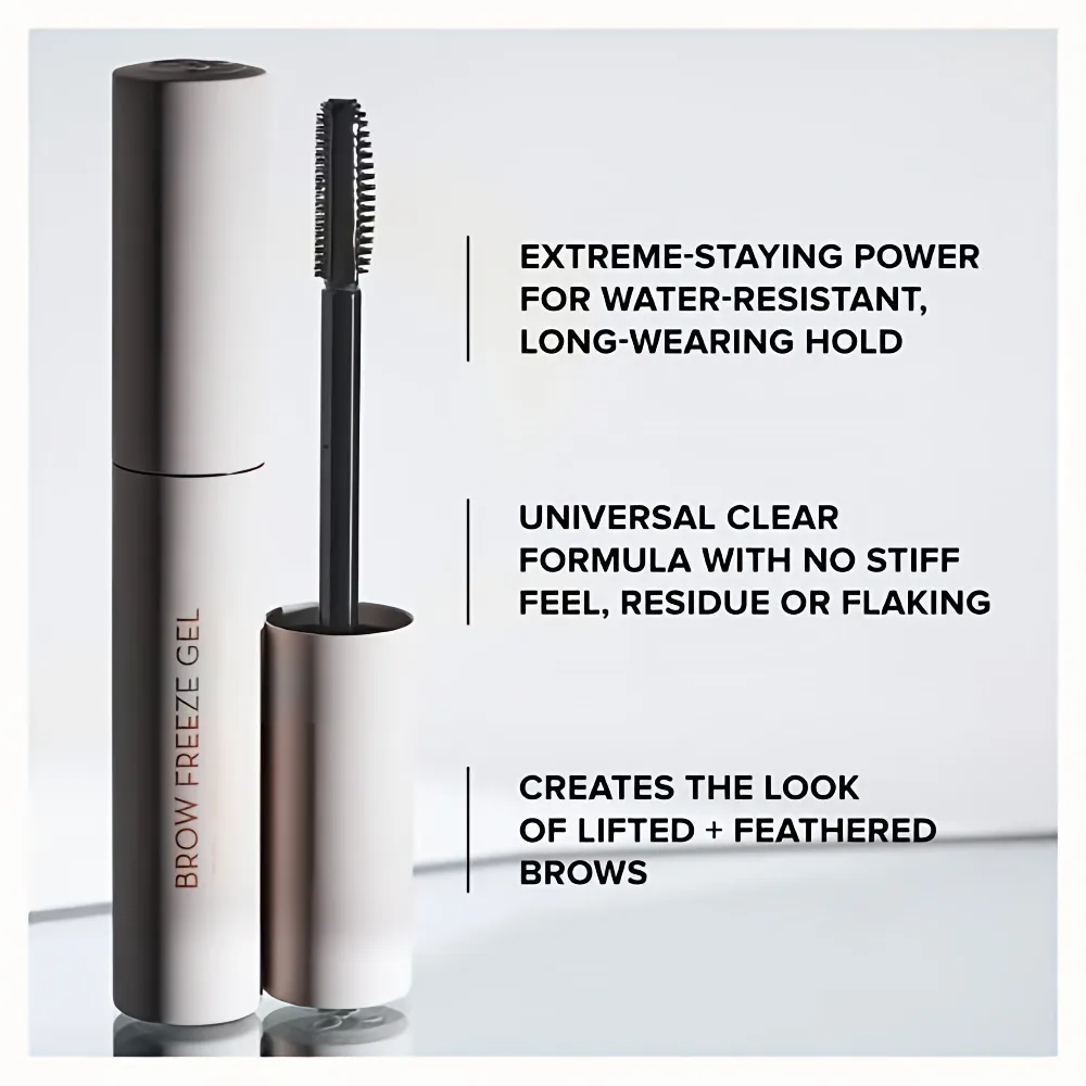 The Anastasia Beverly Hills Brow Freeze® Gel is a clear brow styling gel designed to shape, sculpt, and lock brows in place for a lifted, laminated-look finish. This innovative formula combines the hold of a brow wax with the lightweight feel of a gel, helping to tame unruly hairs while keeping brows perfectly styled all day.