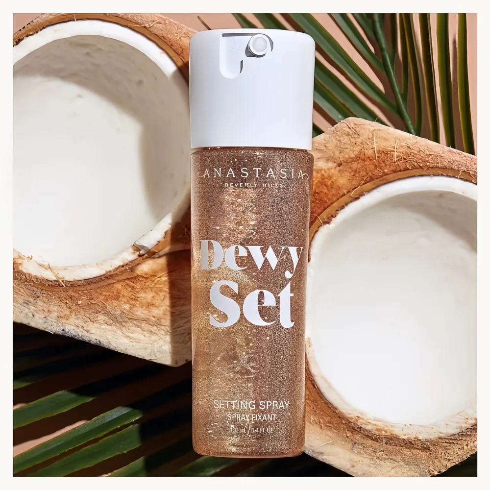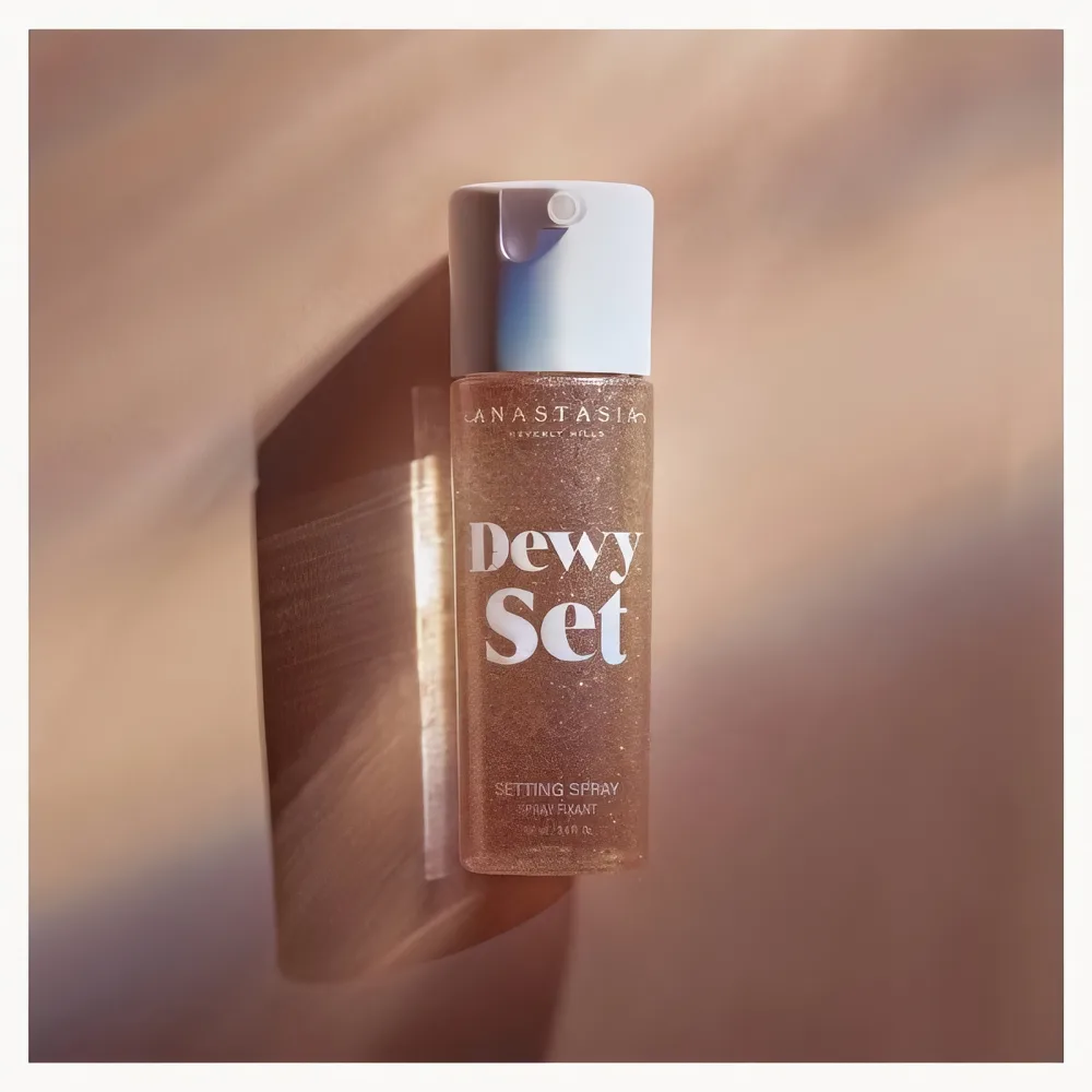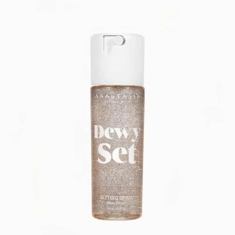 The Anastasia Beverly Hills Dewy Set Setting Spray is a lightweight, refreshing makeup setting mist designed to lock makeup in place while giving the skin a radiant, dewy finish. Its hydrating formula helps blend makeup seamlessly into the skin, reducing any powdery appearance and leaving the complexion looking smooth and luminous.