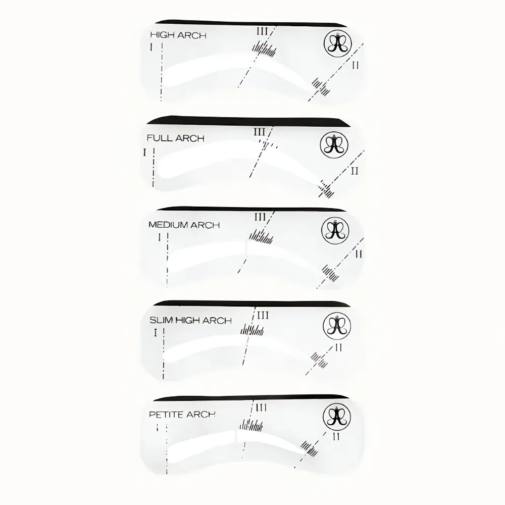 The Anastasia Beverly Hills Stencils – 5 Pack is a set of brow shaping guides designed to help you achieve consistent, symmetrical brows with ease. Each reusable stencil features a specific brow shape, allowing you to fill in and define your brows quickly and accurately, whether you prefer natural, arched, or bold looks.