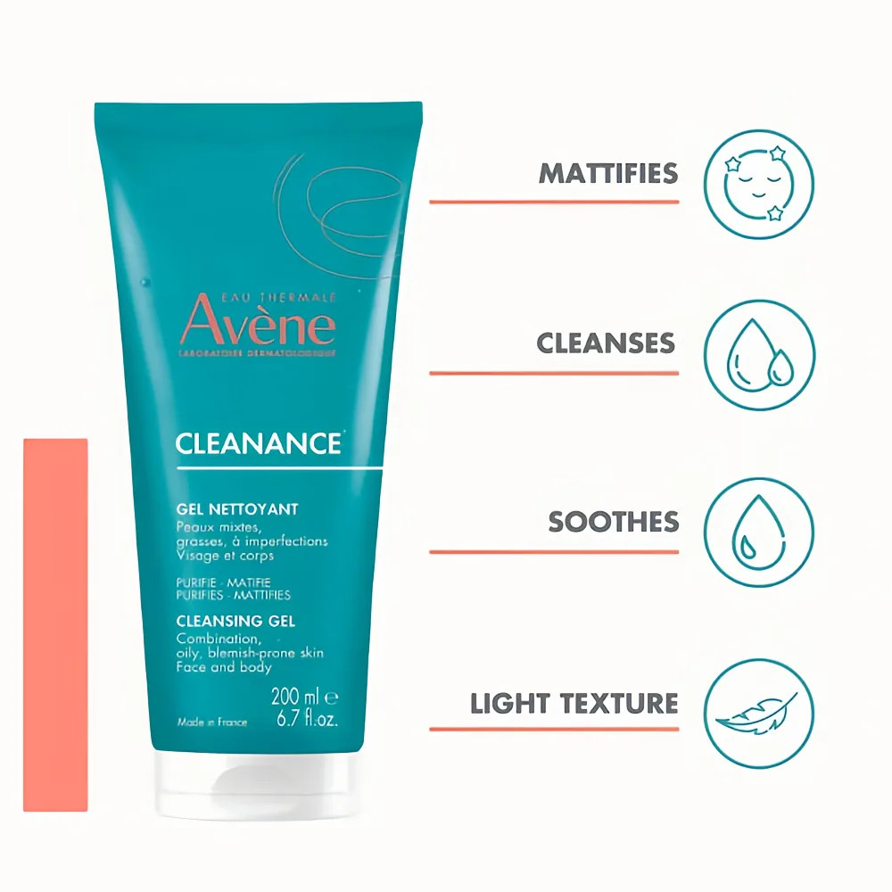 Avène Cleanance Cleansing Gel 200ml is a purifying, soap-free facial and body cleanser specifically formulated for oily, acne-prone, and sensitive skin. It gently removes impurities, excess sebum, and daily buildup while respecting the skin’s natural balance and minimizing irritation.