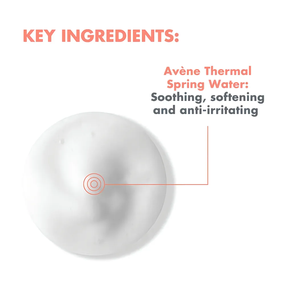 • Soothes & Comforts: A high concentration of Avène Thermal Spring Water—clinically shown in over 150 studies to soothe, soften, and calm the skin—helps reduce sensitivity and discomfort during cleansing.