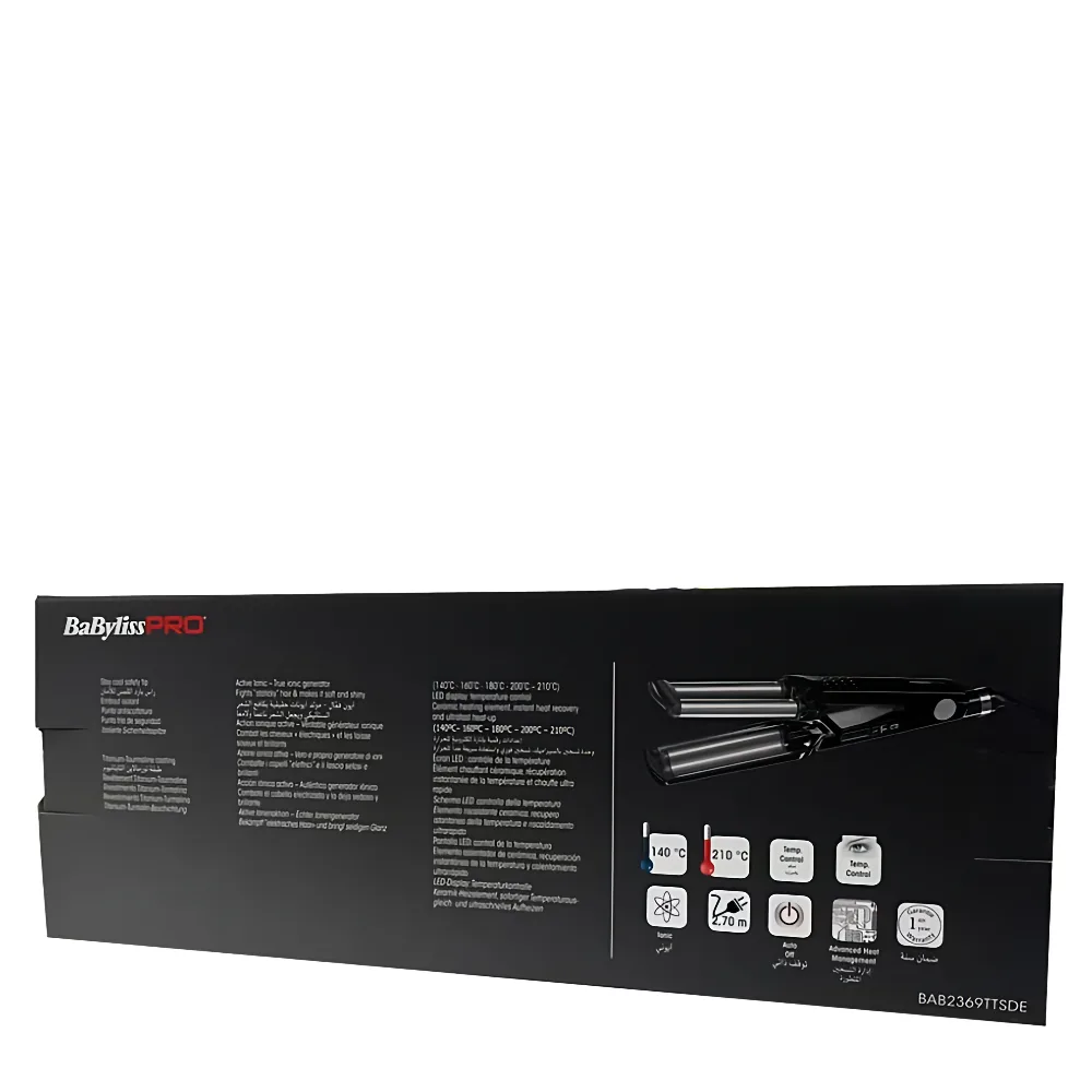 BaByliss PRO Ionic 3D Waver BAB2369TTSDE is a professional triple-barrel hair waver designed to create deep, defined, and natural-looking waves with a 3D texture effect. Inspired by salon and red-carpet styling, it delivers voluminous, long-lasting waves quickly and effortlessly.