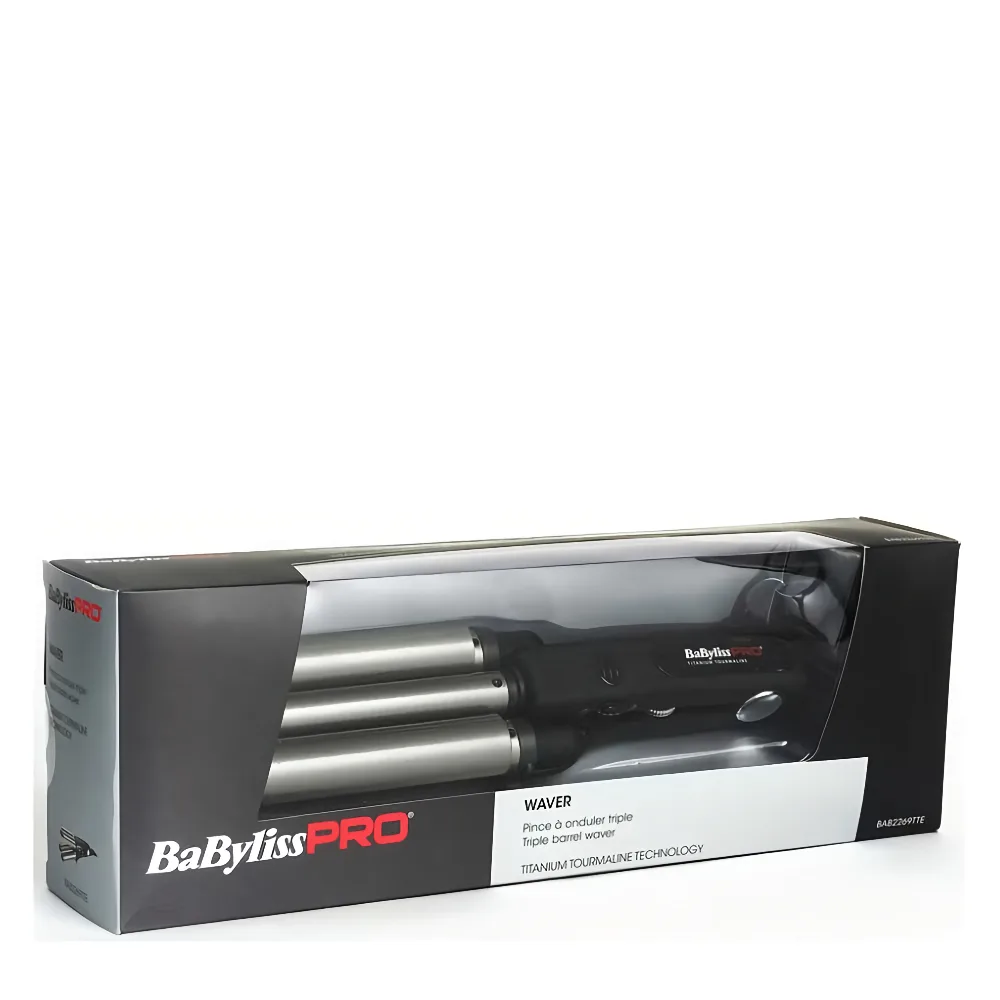BaByliss PRO Triple Barrel Large Hair Waver is a professional styling tool designed to create effortless, glamorous waves with speed and precision. Featuring three large barrels, it allows you to style bigger sections of hair at once, making it ideal for achieving deep, uniform, and long-lasting waves—perfect for a beachy or Hollywood wave look.