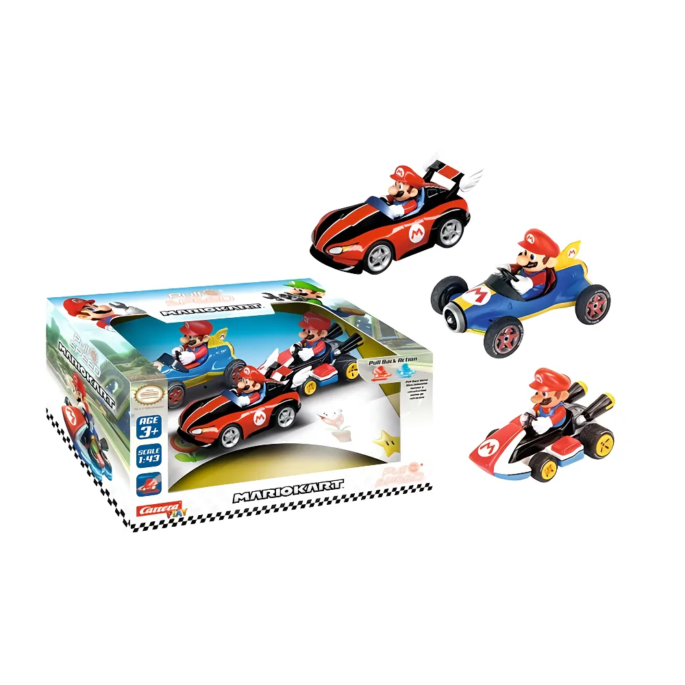 The Carrera Pull ’N’ Speed Mario Kart Mario Collectors brings the iconic Mario racer to life in a compact, action-packed design. Styled with authentic Mario Kart details, this pull-back vehicle is perfect for both play and display.