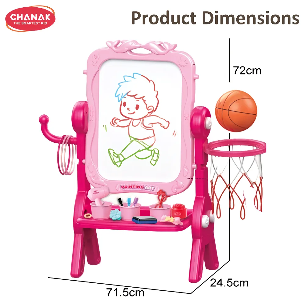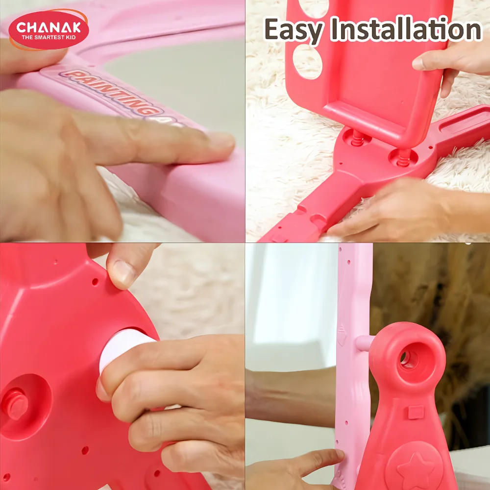 The Chanak 4-In-1 Vertical A-Shaped Makeup Desk is a unique and multifunctional learning and play station designed to spark creativity and imagination in young children. This all-in-one unit combines a makeup/personal grooming desk, double-sided writing board, multiple interactive games, and a comfortable chair, making it a perfect addition to any child’s room or play area.
