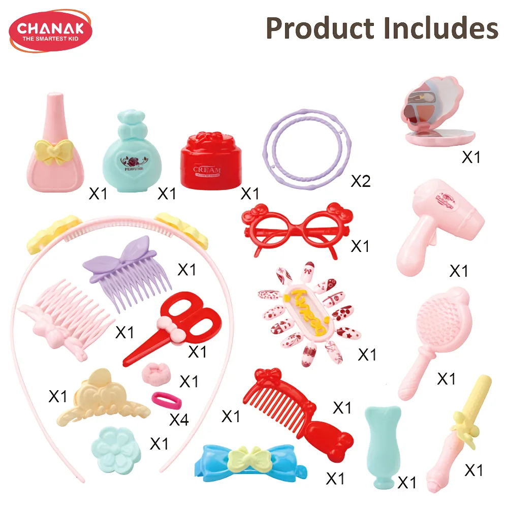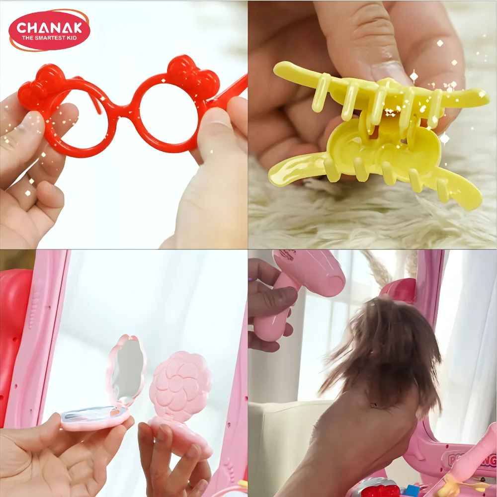 • Makeup Desk: Comes with a mirror-style setup (child-safe), allowing kids to enjoy pretend play and grooming activities.