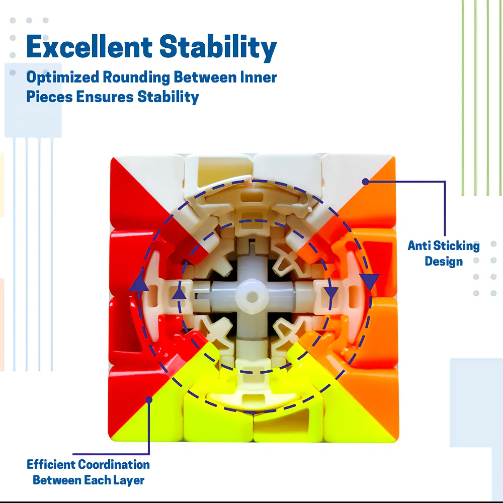 Its stickerless design ensures long-lasting color durability without peeling or fading, making it highly suitable for frequent use by children. The smooth corner-cutting mechanism and stable structure help prevent jams or lock-ups, making the cube ideal for speed-solving practice.