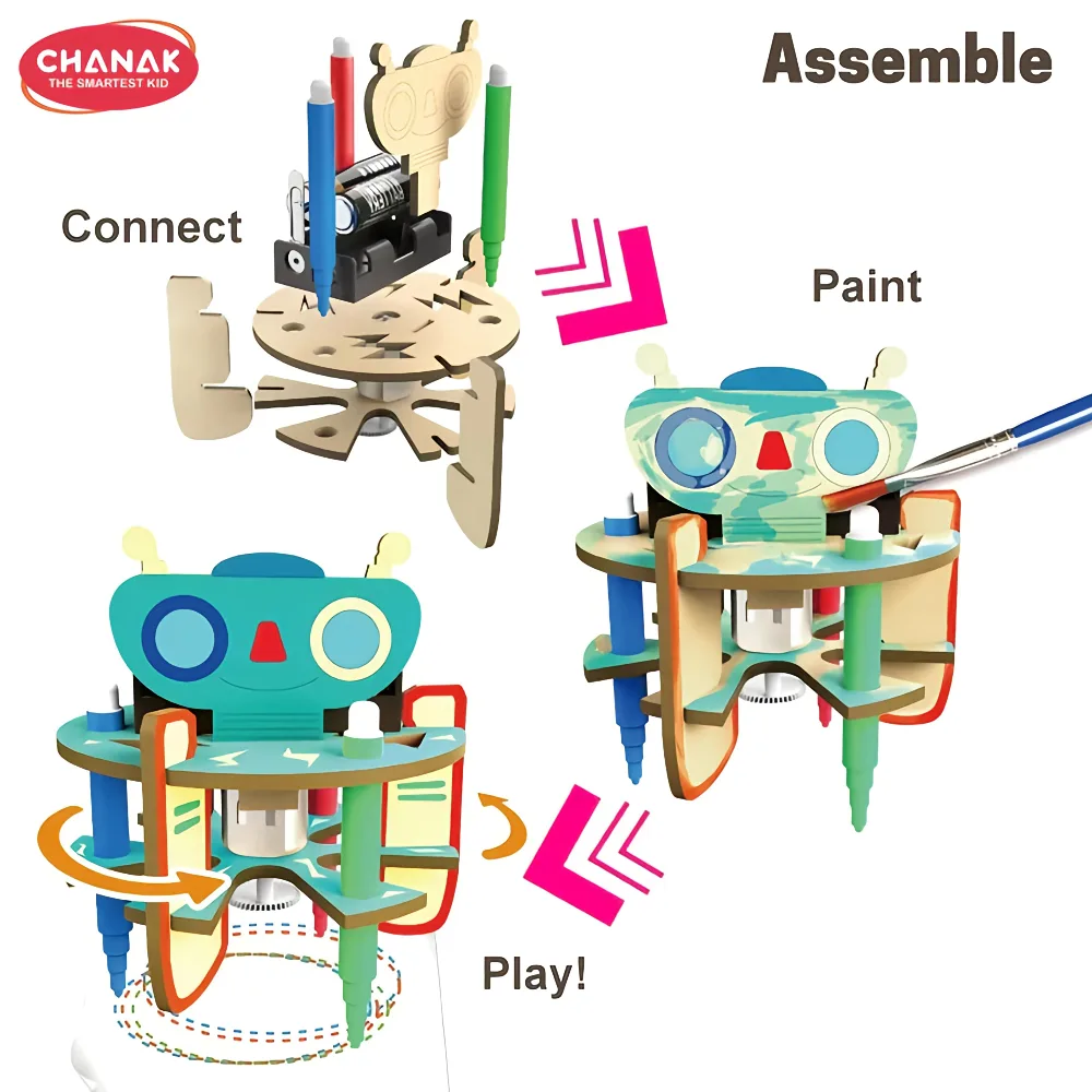 The Chanak 6-in-1 Scientific Discovery DIY Wooden Electric Toy Kit lets kids aged 8+ build and explore robots, cars, space models, and more. Made with safe wooden parts and simple electric components, this kit teaches STEM principles through hands-on creativity, experimentation, and fun.