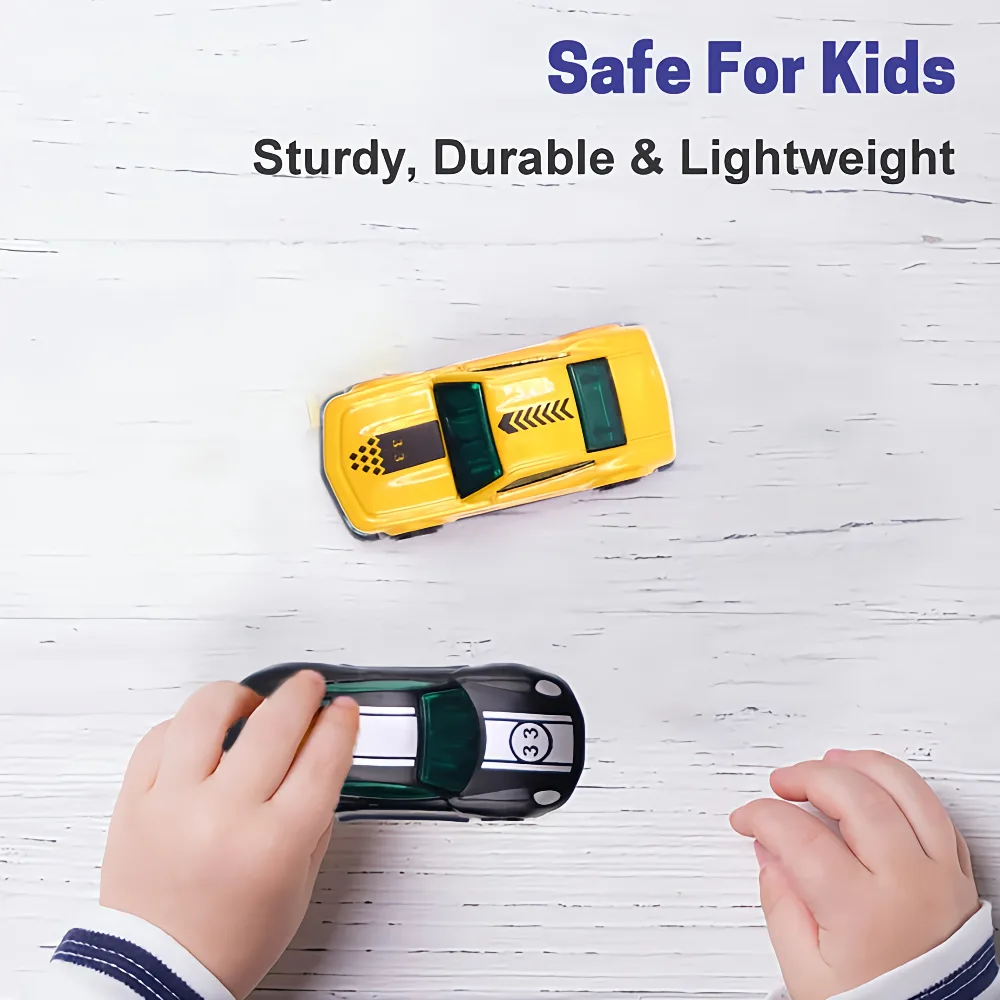 The Chanak Die-Cast Metal Racing Car Set is an exciting collection of high-quality miniature racing cars made especially for young car lovers. Each car is crafted with a sturdy die-cast metal body, giving it a premium feel and long-lasting durability. Designed with smooth free-wheel action, these cars glide effortlessly across flat surfaces, making them ideal for fast-paced racing and pretend street adventures.