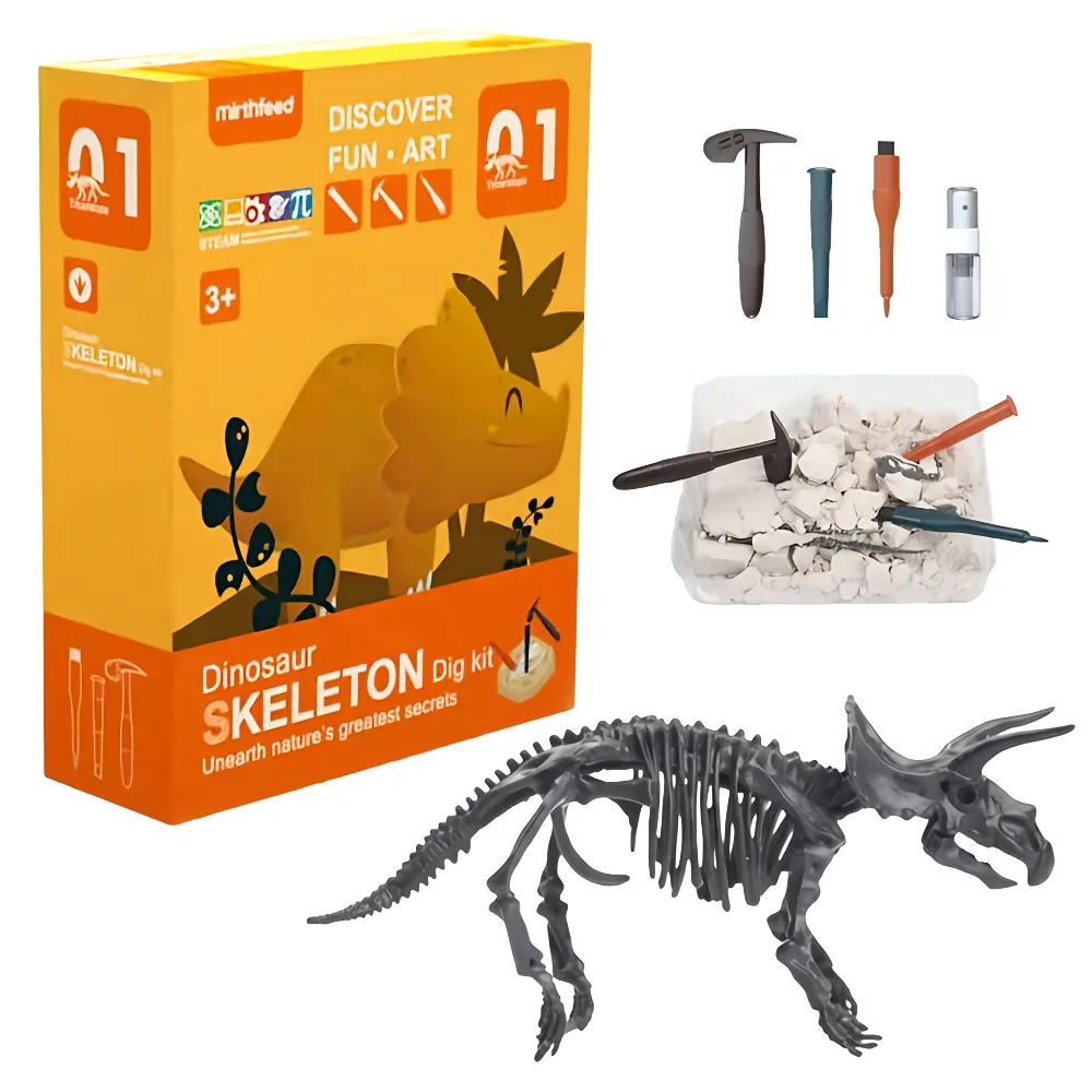 Children use the included child-safe tools, such as a chisel and brush, to gently excavate the fossil, improving their focus, patience, and motor skills. Once all the fossil pieces are revealed, kids can assemble them into a complete mini dinosaur skeleton, sparking creativity and imaginative storytelling.