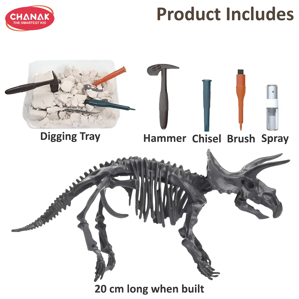 The Chanak Dinosaur Skeleton Dig Kit – Excavation & Discovery Set introduces young learners to the fascinating world of dinosaurs and archaeology through interactive, hands-on play. Designed for kids above 3 years, this educational science toy includes a dig block with hidden dinosaur fossil pieces waiting to be uncovered.