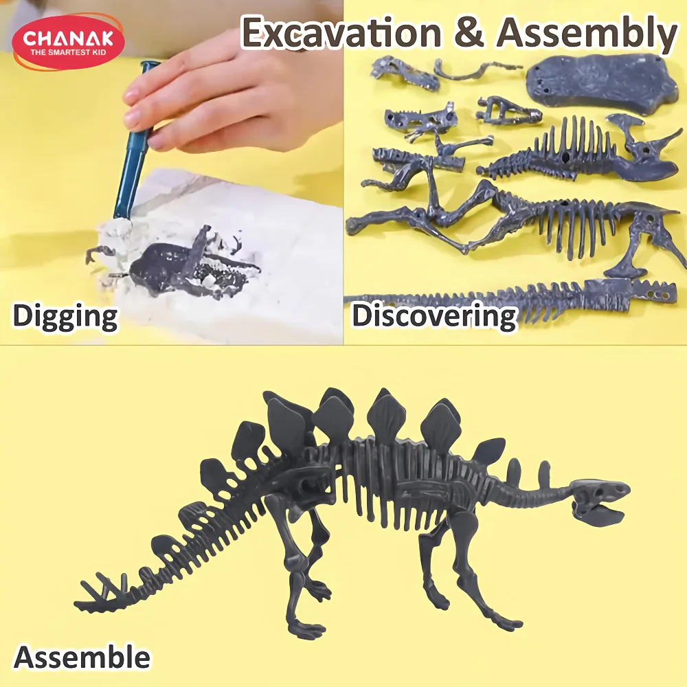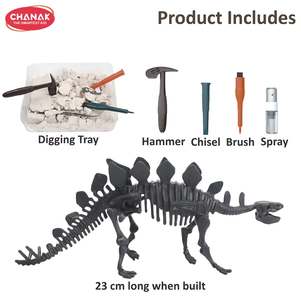 The Chanak Dinosaur Skeleton Dig Kit – Stegosaurus Edition offers a thrilling hands-on introduction to the world of dinosaurs, fossils, and archaeology. Specially designed for kids aged above 3 years, this STEAM learning kit features a dig block containing hidden Stegosaurus fossil pieces waiting to be uncovered.