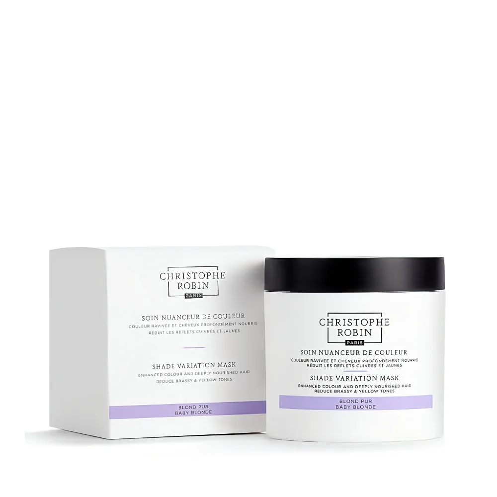 Christophe Robin Shade Variation Mask Baby Blonde 250ML is a specialized treatment designed to enhance and revive blonde or lightened hair tones while providing deep nourishment and care. Formulated with a blend of nourishing ingredients and subtle pigments, this mask works to neutralize unwanted yellow or brassy tones, leaving blonde hair looking brighter, cooler, and more radiant.
