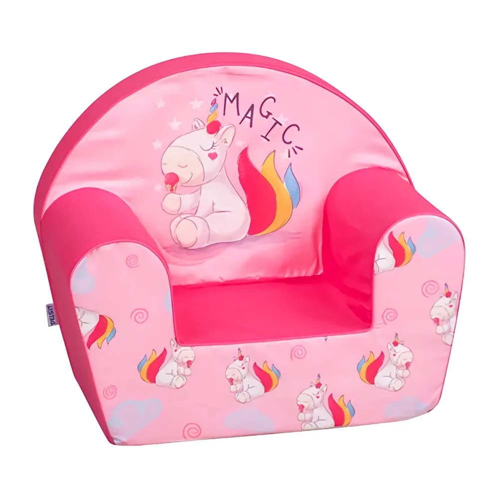 The DELSIT Arm Chair – Magic Unicorn is a soft, lightweight foam chair made especially for toddlers and young children. Crafted from durable polyurethane foam with no hard frame, it provides a safe, cozy, and comfortable seating option for playrooms, nurseries, or bedrooms.