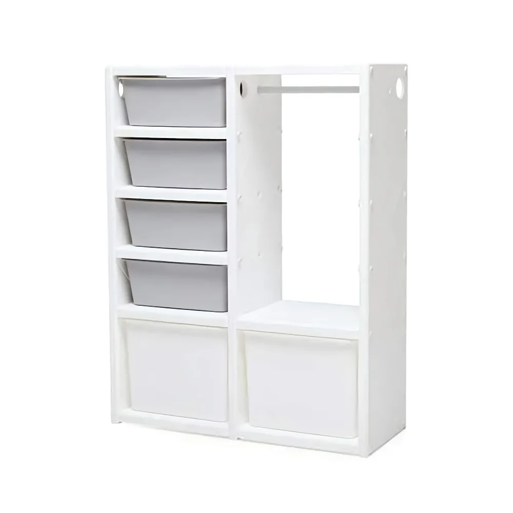 Crafted from high-quality, non-toxic materials, the organizer is sturdy, stable, and safe for children’s use. Its modular design allows it to fit seamlessly into bedrooms, playrooms, or nurseries, while encouraging kids to organize independently. The modern gray and white color combination blends effortlessly with contemporary interiors, offering both style and functionality.
