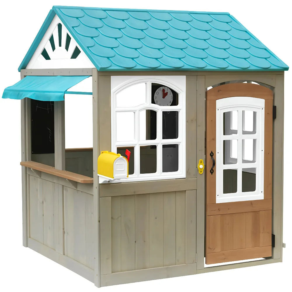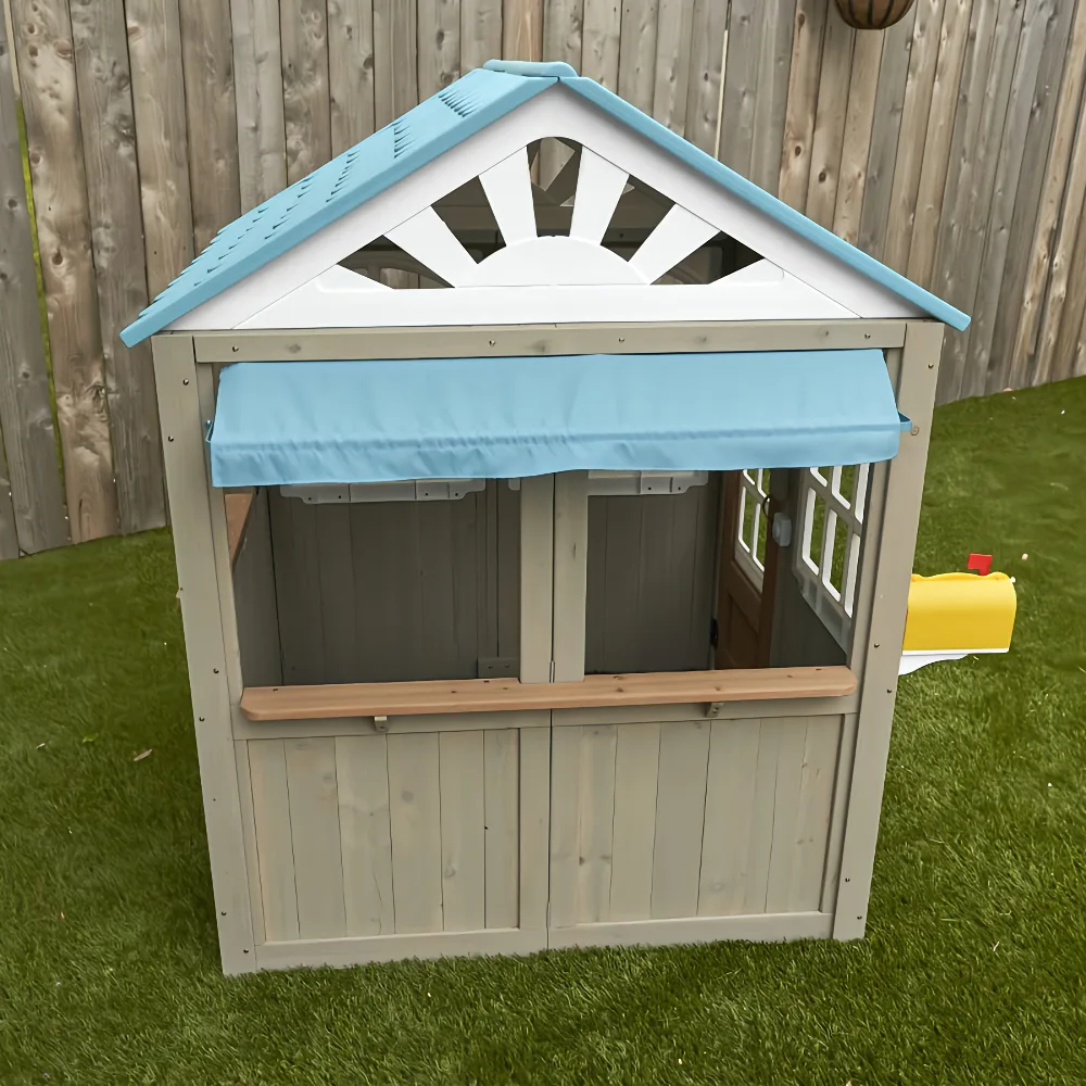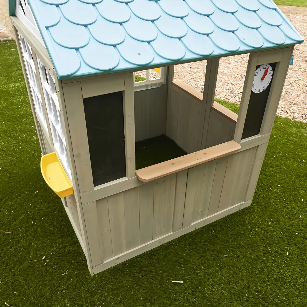 Perfect for backyards and gardens, the playhouse offers an open, airy layout that allows kids to play, socialize, and create their own stories. Built from durable, high-quality wood with child-safe finishes, it is designed to withstand outdoor conditions while providing a safe and engaging play environment. The Oceanfront Playhouse supports imaginative play, social interaction, and outdoor activity in a fun and playful setting.