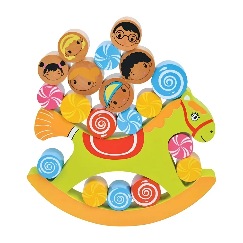 The Lelin Horse Balancing game is a fun and educational wooden toy designed to enhance children’s balance, coordination, and logical thinking skills. Featuring charming horse-themed wooden pieces, this interactive game encourages kids to carefully stack and balance the horses without letting them fall.