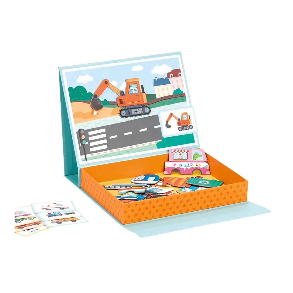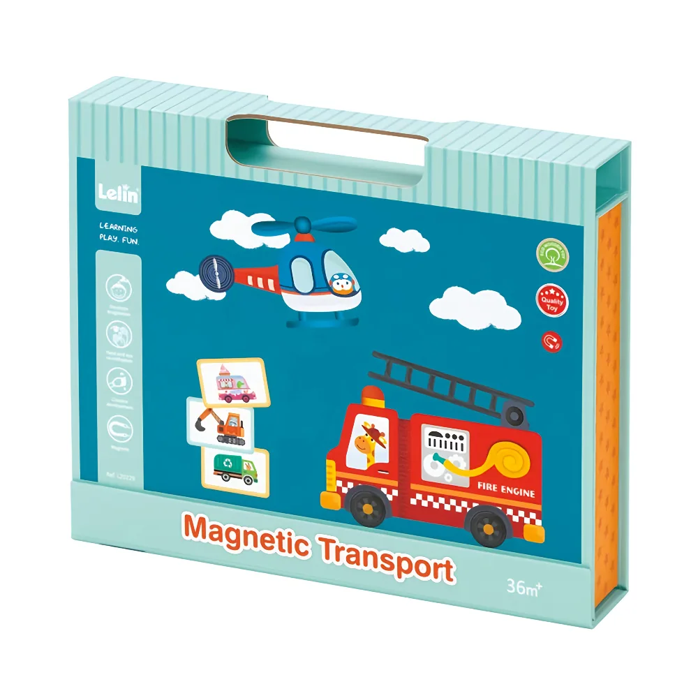 The Lelin Magnetic Transport set is a fun and educational magnetic toy designed to introduce children to different modes of transportation while promoting hands-on learning. Featuring colorful transport-themed magnetic pieces, children can easily arrange vehicles such as cars, trucks, trains, and airplanes on magnetic boards or metal surfaces.