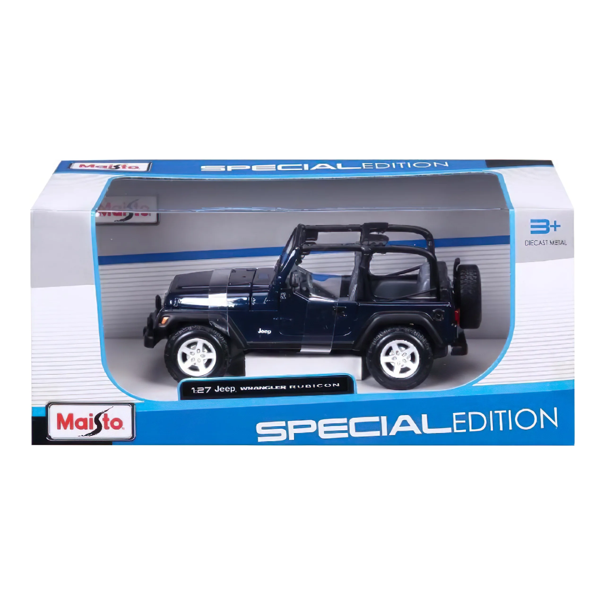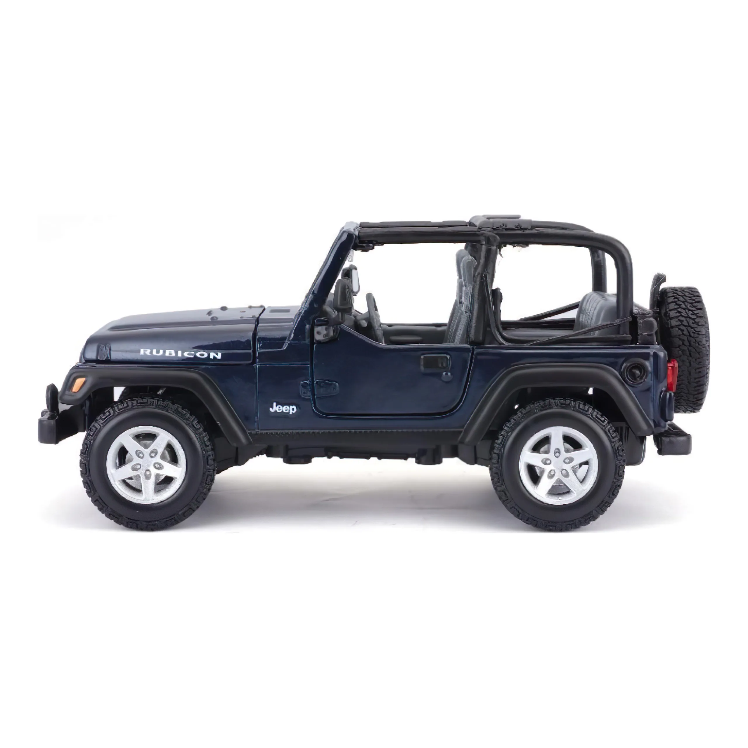 The Maisto 1:18 scale model of the Jeep Wrangler Rubicon in metallic blue is a detailed die-cast replica that captures the rugged design of the original vehicle. This model is part of Maisto’s Special Edition series, known for its quality craftsmanship and attention to detail.