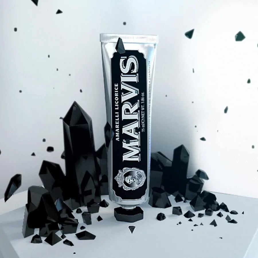 Marvis Amarelli Licorice Mint Toothpaste (3×85ml) offers a unique blend of sweet licorice and refreshing mint for a premium brushing experience.