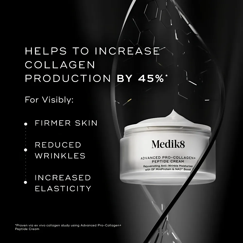 Medik8 Advanced Pro-Collagen+ Peptide Cream 50 ml is a luxurious anti-aging moisturizer formulated with a high concentration of advanced peptides and skin-nourishing ingredients. Designed to deliver deep hydration while targeting multiple signs of aging, this cream supports firmer, smoother, and more youthful-looking skin.