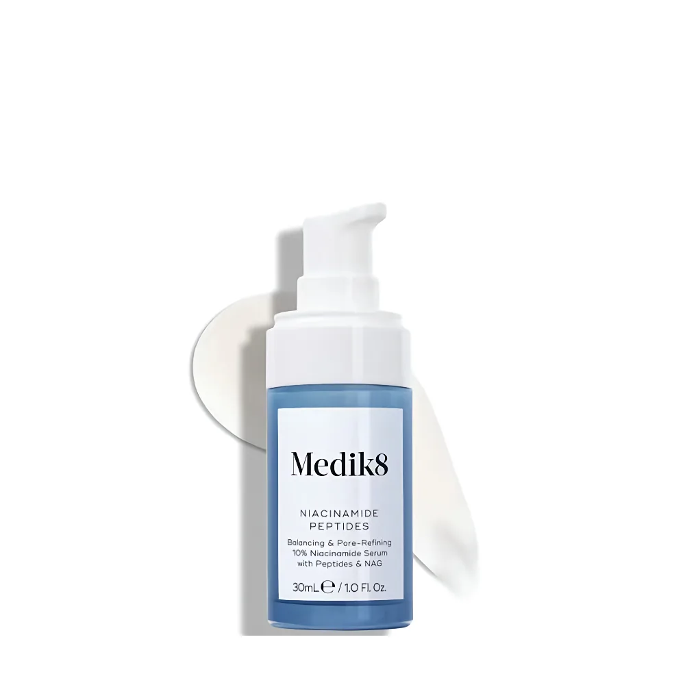 Medik8 Niacinamide Peptides 30ml is a targeted skincare serum designed to improve skin appearance by combining the brightening benefits of niacinamide with peptide technology. This powerful pairing works to help strengthen the skin’s barrier, refine texture, and promote a more even, radiant look over time.