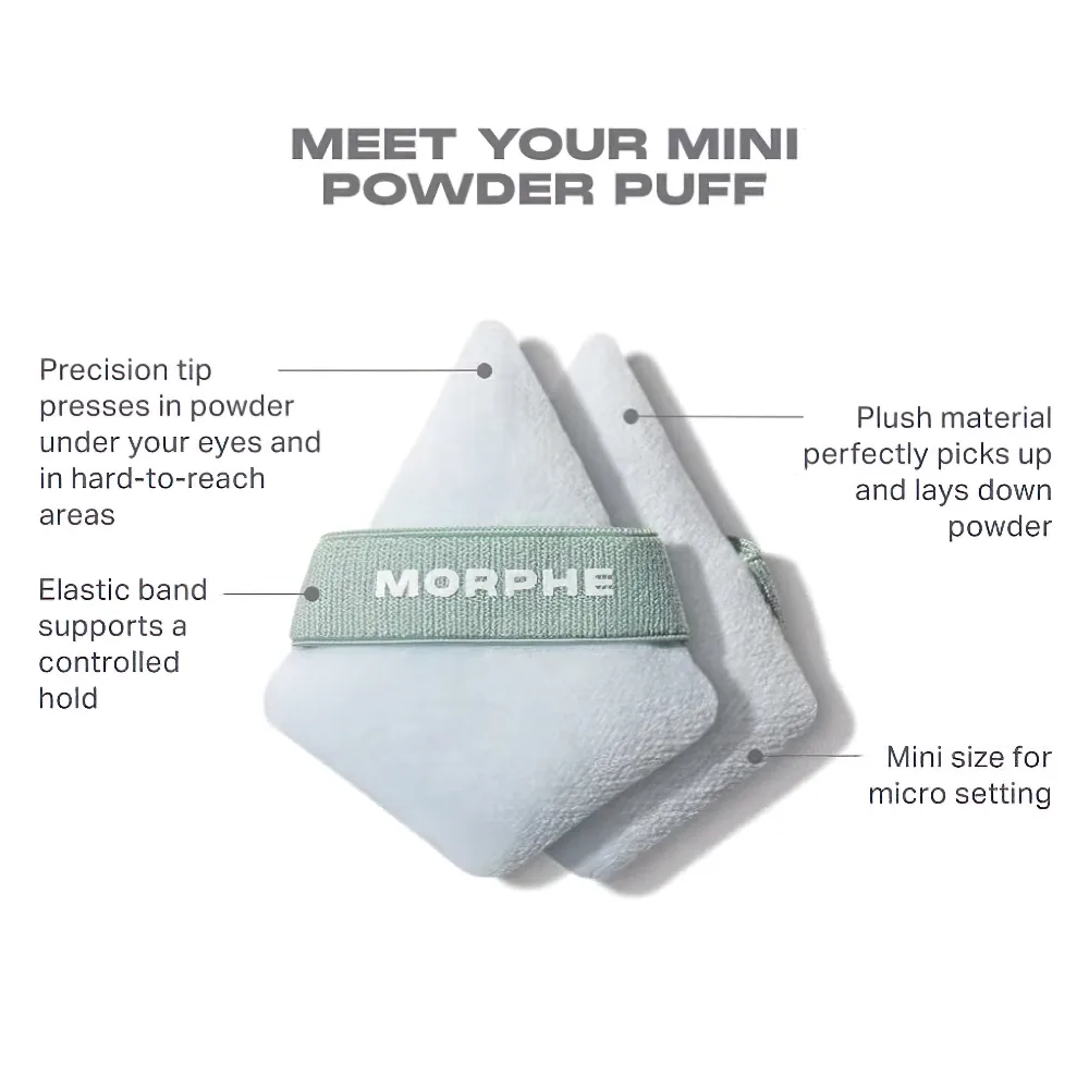 The Morphe To The Point Mini Powder Puff Trio is a curated set of professional-grade tools designed for flawless powder application. Each ultra-compact puff features a velvety velour surface for seamless product pickup and a pointed tip for precise placement. Ideal for: