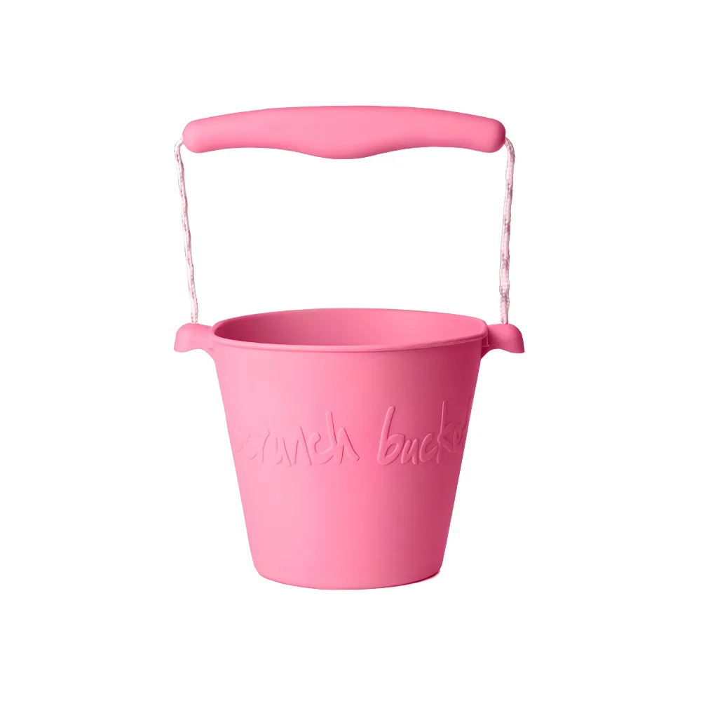 Scrunch Bucket – Flamingo Pink is a soft, flexible, foldable silicone bucket designed for beach days, outdoor adventures, and everyday play. Its clever scrunch design allows the bucket to fold flat for easy storage and travel, making it perfect for holidays, trips, and compact spaces at home.