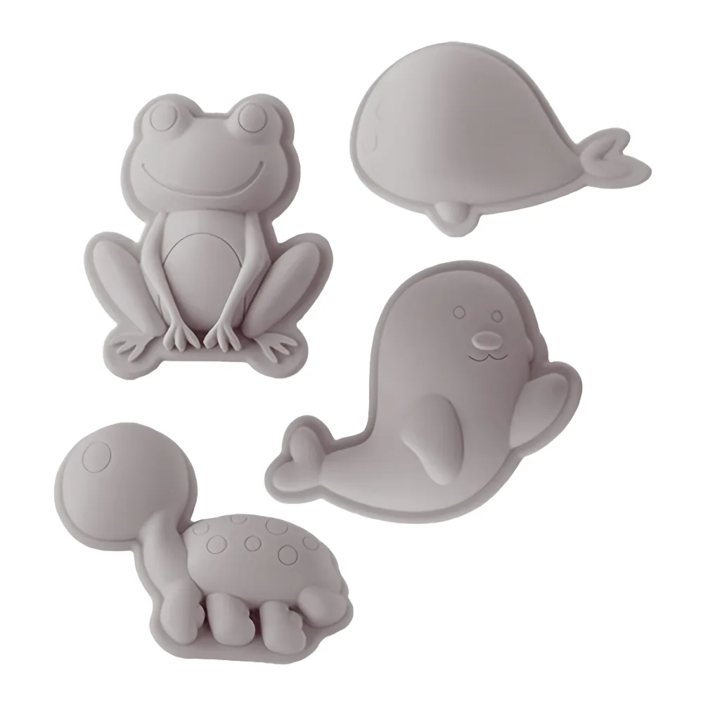 Flexible warm gray silicone sand moulds designed for creative beach and outdoor play.