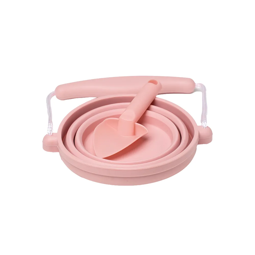 A flexible dusty rose silicone seedling pot that encourages hands-on gardening and nature-based learning for kids.