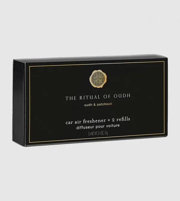 The Ritual of Oudh Car Perfume is a premium in-car fragrance that delivers a rich, woody scent of oudh and patchouli for a luxurious driving experience.