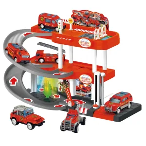 Chanak Fire Department 3-In-1 Parking Building Playset For Kids